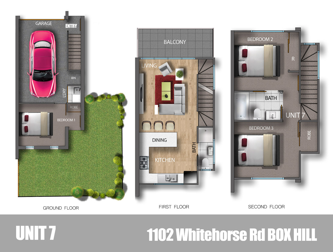 位于Box Hill黄金地段, 仅19公里到CBD. 步行距离之内, 到Box Hill的商场, Box Hill的火车站, Box Hill的汽车客运站, 电车链接109(到墨尔本港和CBD). 近Surrey Park, Medical Centre, Kingswood College, Box Hill火车站和Centro购物中心。3房2卫户型,一楼为客厅、厨房、洗衣房和私人花园,二楼为卧室。仅有三套。东南区稀有地段高端联排别墅,全新物业,套数有限,先到先得。