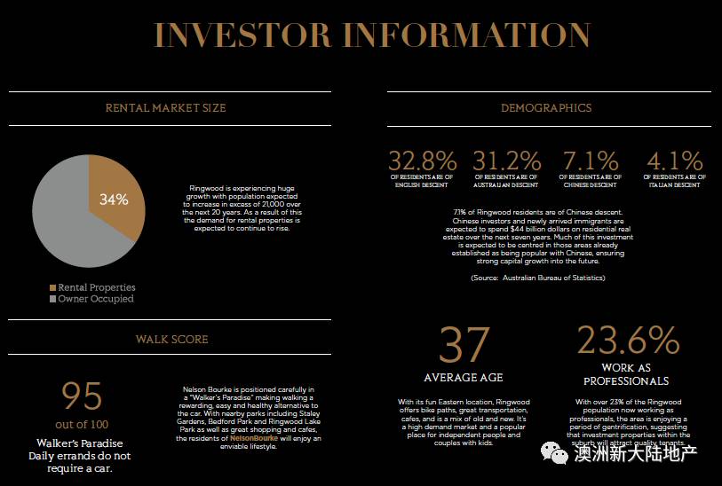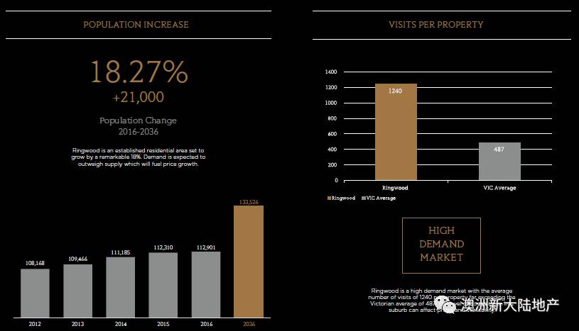 以下数据直接说明了Ringwood是一个正在快速发展的区域,人口增长速度较快,居民平均年龄为37岁,23.6%的居民为专业人士;租赁市场良好,买卖需求市场良好,属于高住房需求区域;