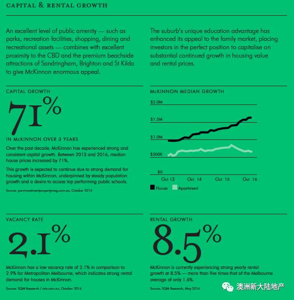 据官方数据显示,Mckinnon过去三年的区域房价增长率为71%,空租率低至2.1%,房租以每年8.5%稳步增长。