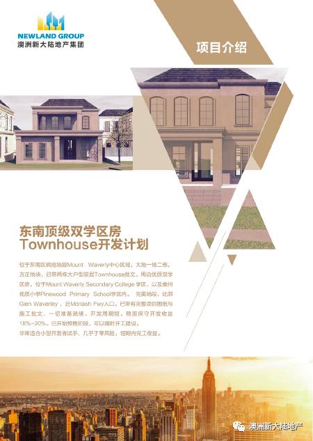 澳洲新大陆地产集团是一家位于墨尔本的集项目开发投资管理、项目销售以及租赁管理为一体的集团公司。