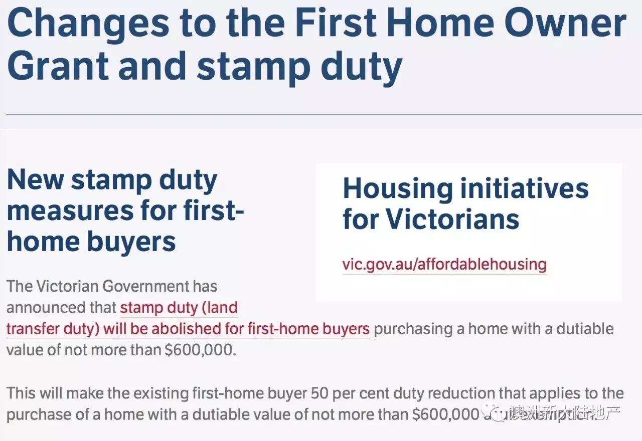 相信最近在朋友圈传的沸沸扬扬的墨尔本印花税以及首次置业补贴的话题已经引起了小伙伴们的各种热烈讨论,确实维州安德鲁斯政府在3月4号晚间突然宣布在2017年7月1号起将开始实施一系列的地产调控新政策。随即政府官方网站State Revenue Office(SRO)即发文进一步阐述了几大新政策