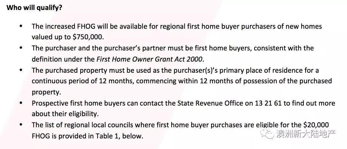 2,购买物业必须是全新或尚未开建的房产(包括期房楼花等),且房产价值低于或等于$750,000澳币