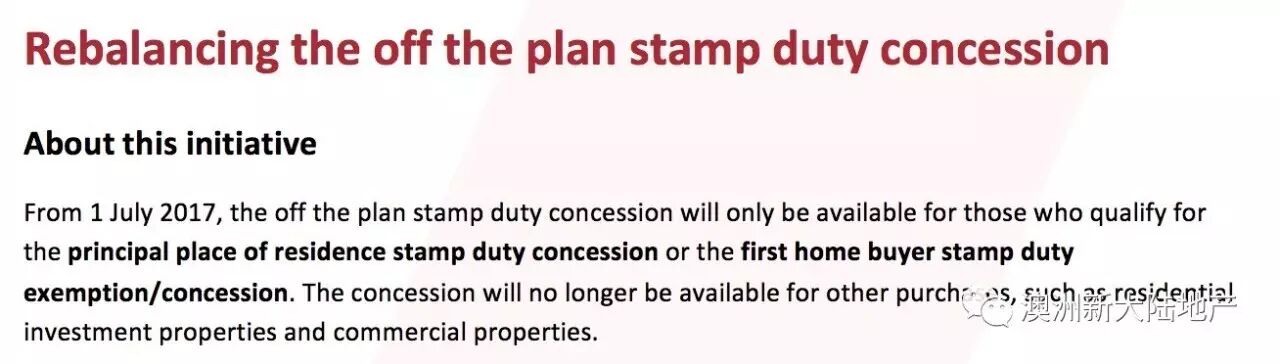 部分澳洲本地人士也不再享有期房楼花的印花税减免