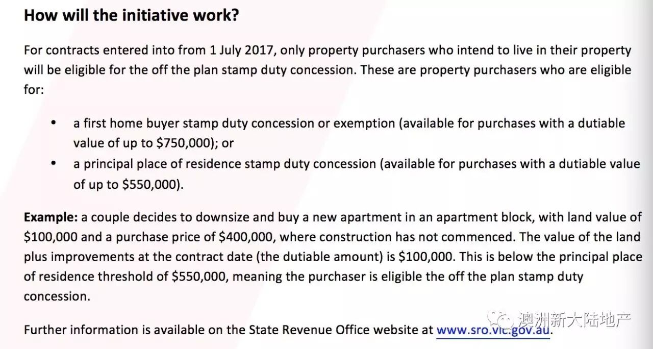 在此之前,不论海外人士或者澳洲本地买家购买所有的期房和楼花项目都可以享受印花税减免。